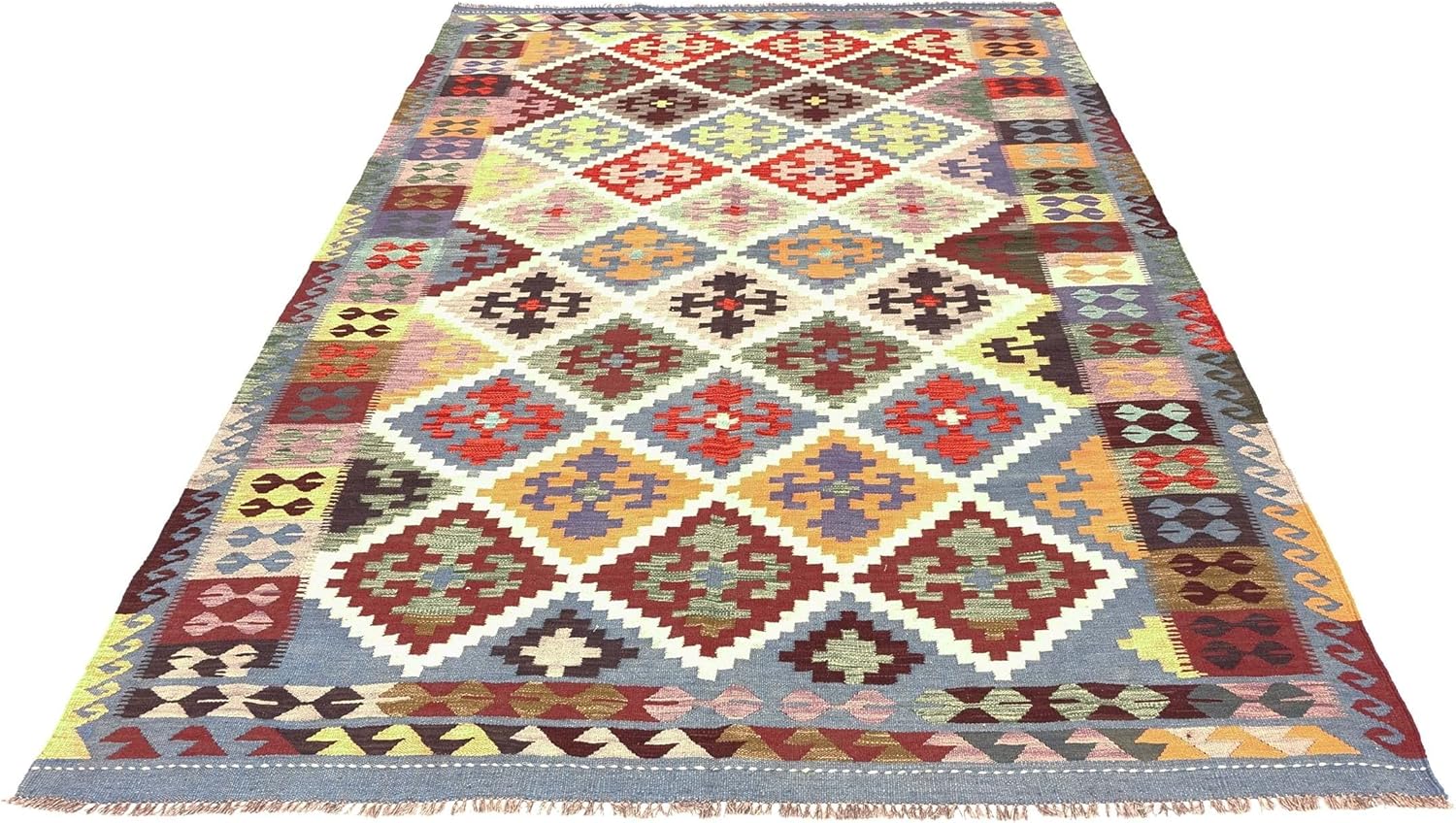 Top-Angebot: RUG PRINCE Afghan Maimana Kilim Rug, 200 x 300 cm, Handwoven, Colourful, Geometric, Handmade 143