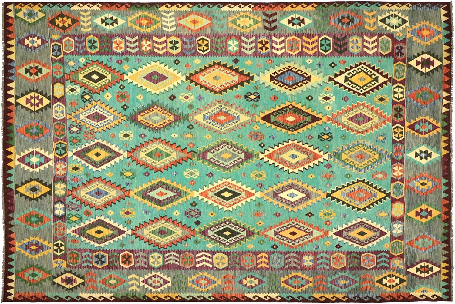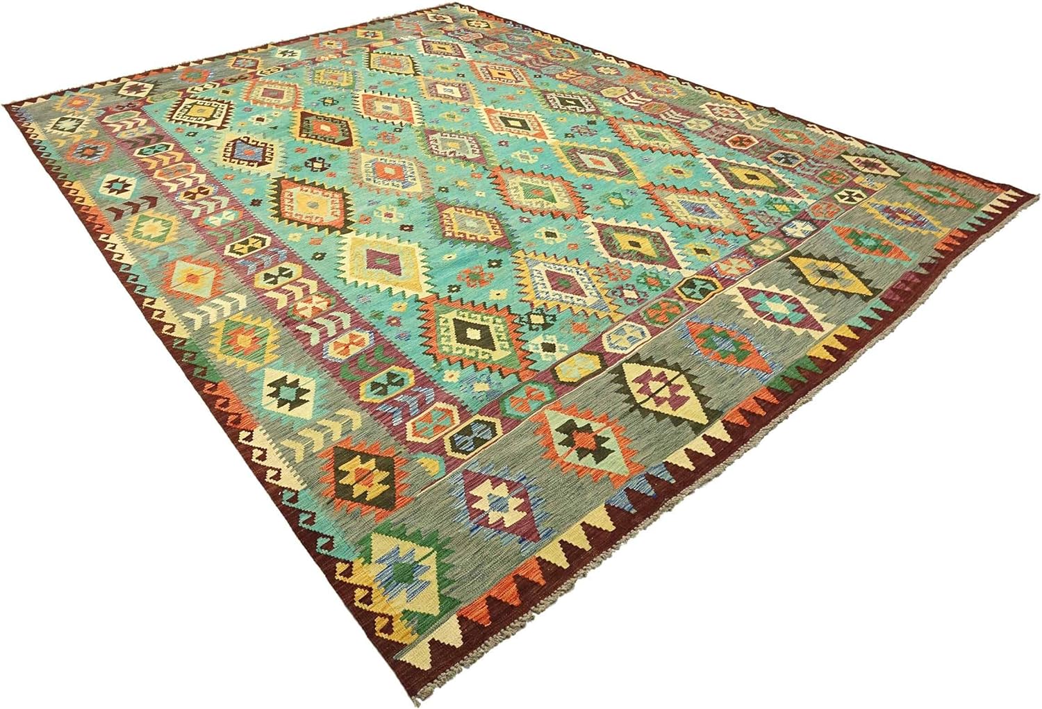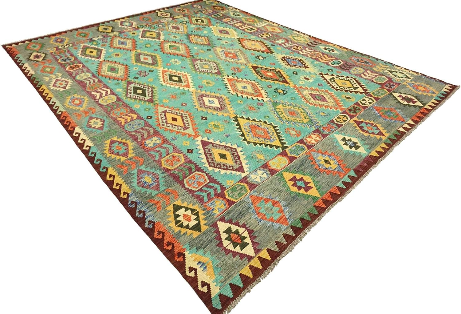Top-Angebot: RUG PRINCE Afghan Maimana Kilim Rug, Handwoven, 300 x 390 cm, Turquoise Geometric