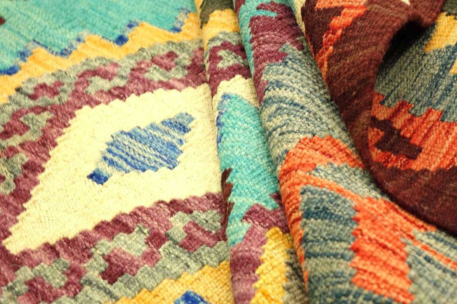 Ein handgeknüpfter Orientteppich ist nicht nur ein Bodenbelag – er ist Kunst, Kultur und Wertanlage zugleich. Mit dem RUG PRINCE Afghan Maimana Kilim Rug, Handwoven, 300 x 390 cm, Turquoise Geometric holen Sie sich ein Stück Geschichte in Ihre vier Wände.