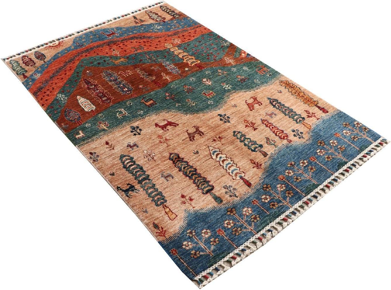 Top-Angebot: RUG PRINCE Afghan Ziegler Ariana Landscape Rug 100 x 150 cm Hand-Knotted Beige Landscape