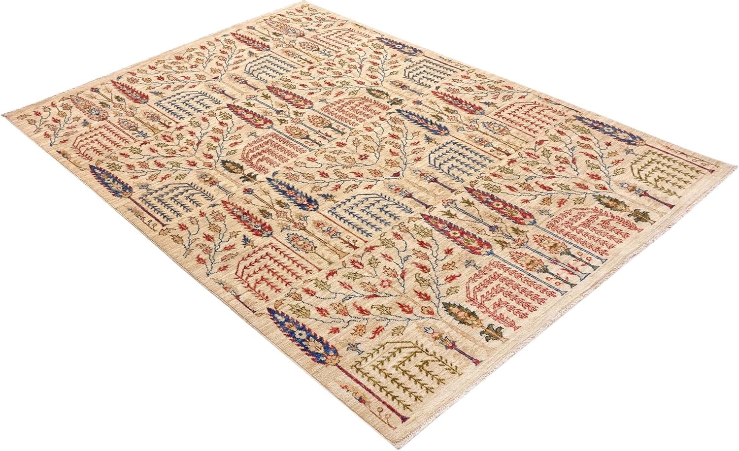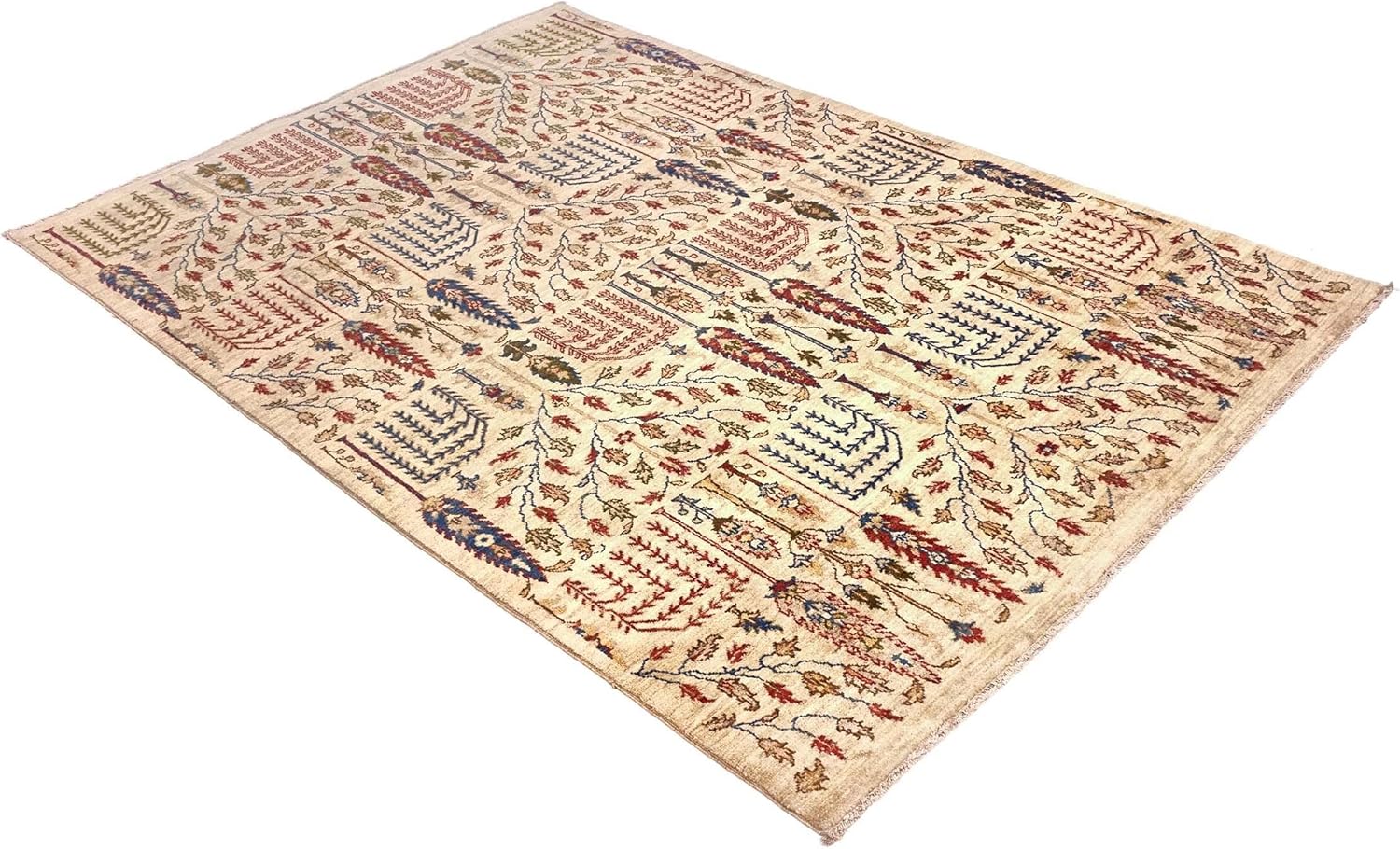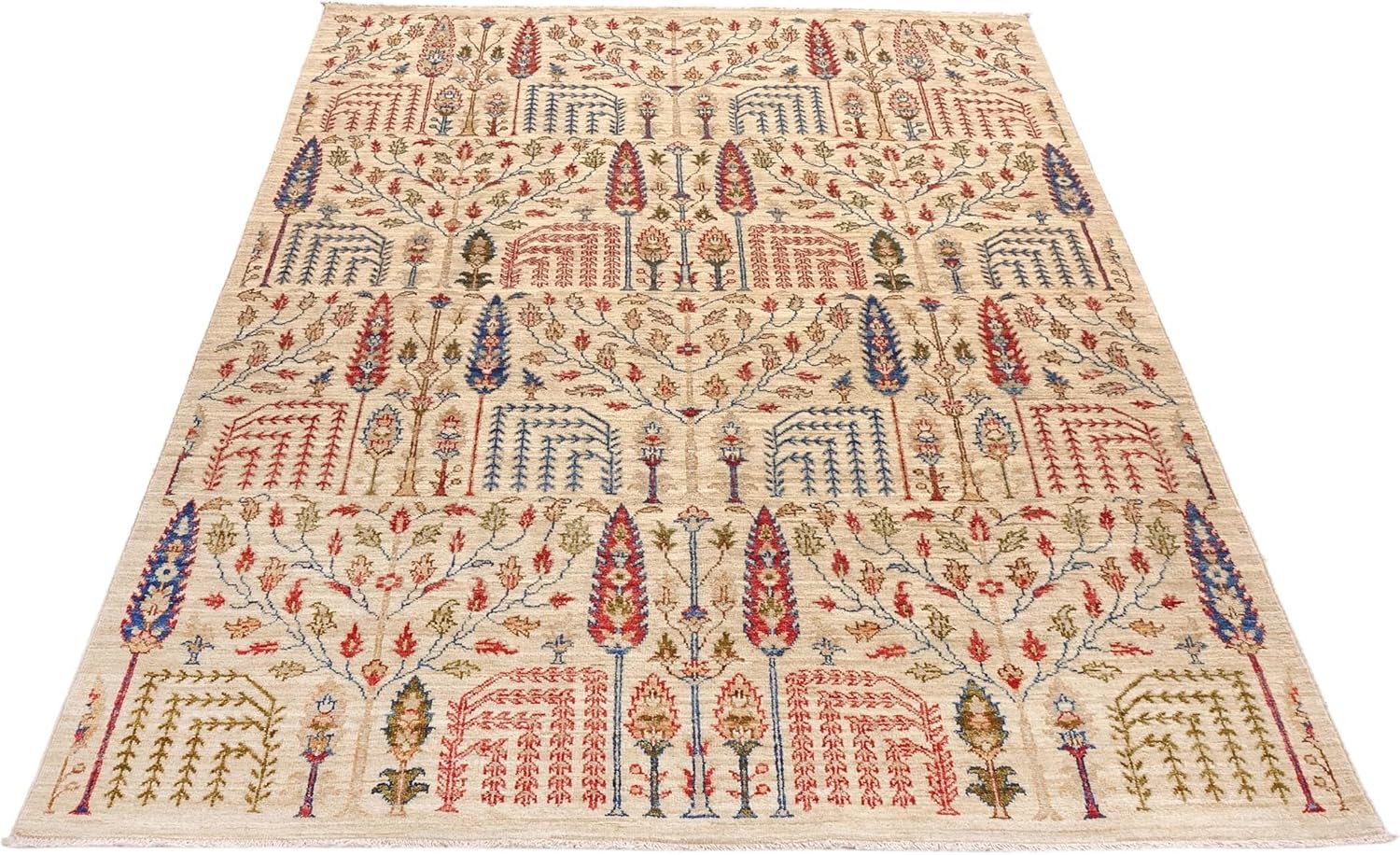 Top-Angebot: RUG PRINCE Afghan Ziegler Ariana Trees Rug 170 x 240 cm Hand Knotted Beige Floral Orient