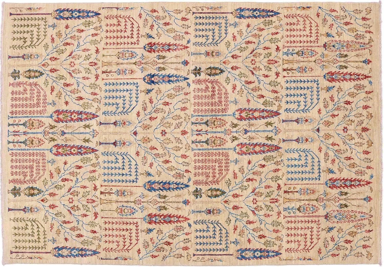 Empfehlung: RUG PRINCE Afghan Ziegler Ariana Trees Rug 170 x 240 cm Hand Knotted Beige Floral Orient