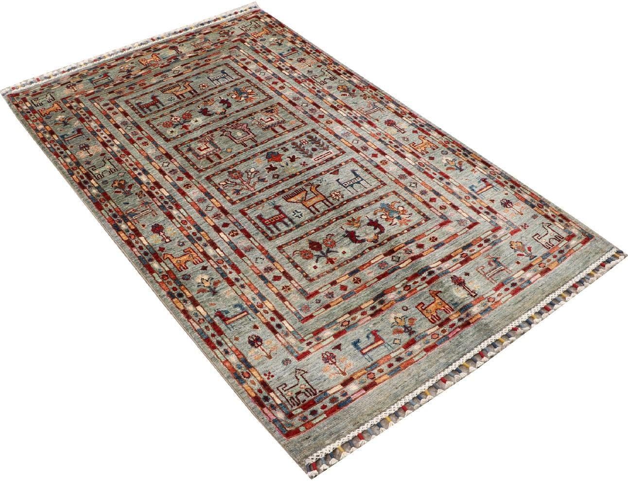 Jetzt entdecken: RUG PRINCE Afghan Ziegler Khorjin Ariana Rug 100 x 150 cm Hand Knotted Grey Striped Orient a