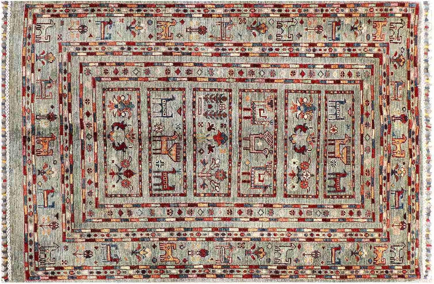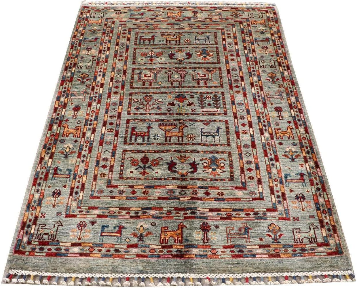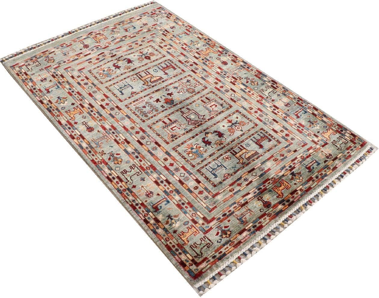 Top-Angebot: RUG PRINCE Afghan Ziegler Khorjin Ariana Rug 100 x 150 cm Hand Knotted Grey Striped Orient a