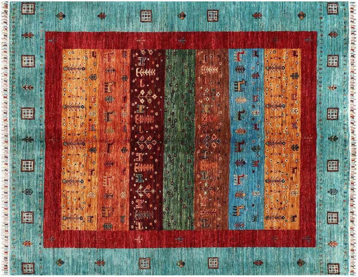 Top-Angebot: RUG PRINCE Afghan Ziegler Khorjin Ariana Rug 150 x 190 cm Hand Knotted Blue Striped Orient