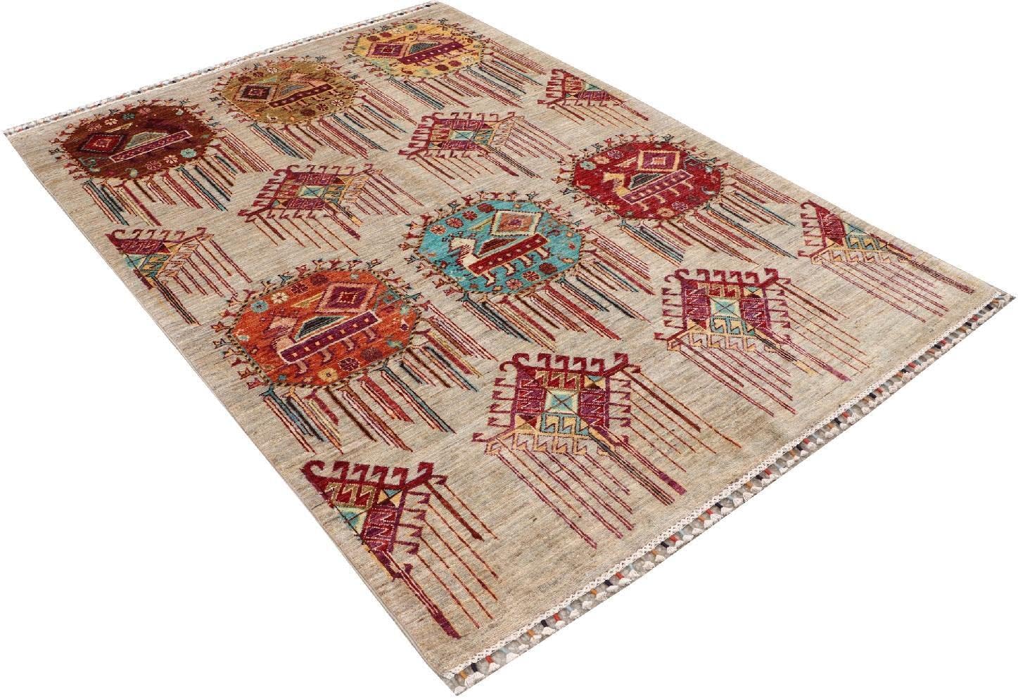 Top-Angebot: RUG PRINCE Afghan Ziegler Khorjin Ariana Rug 150 x 200 cm Hand Knotted Beige Pattern A