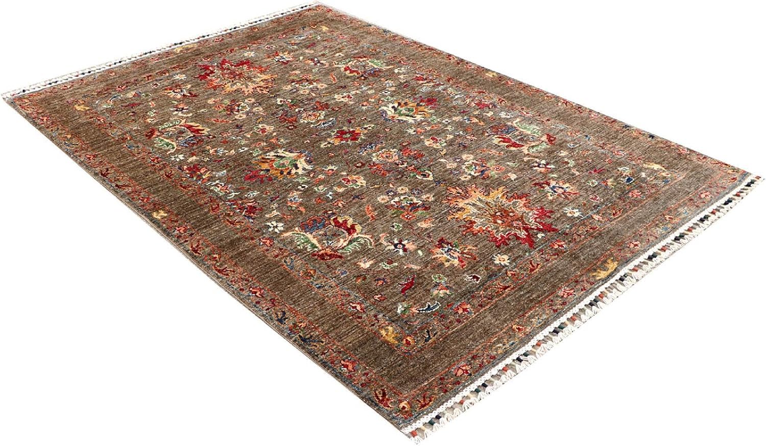 Top-Angebot: RUG PRINCE Afghan Ziegler Khorjin Ariana Rug 150 x 200 cm Hand-Knotted Brown Floral Orient C