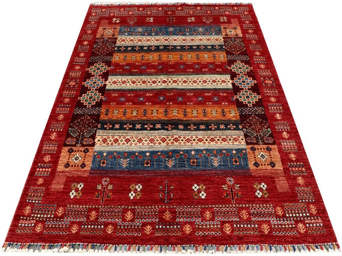 Top-Angebot: RUG PRINCE Afghan Ziegler Khorjin Ariana Rug 160 x 210 cm Hand-Knotted Red Striped Orient