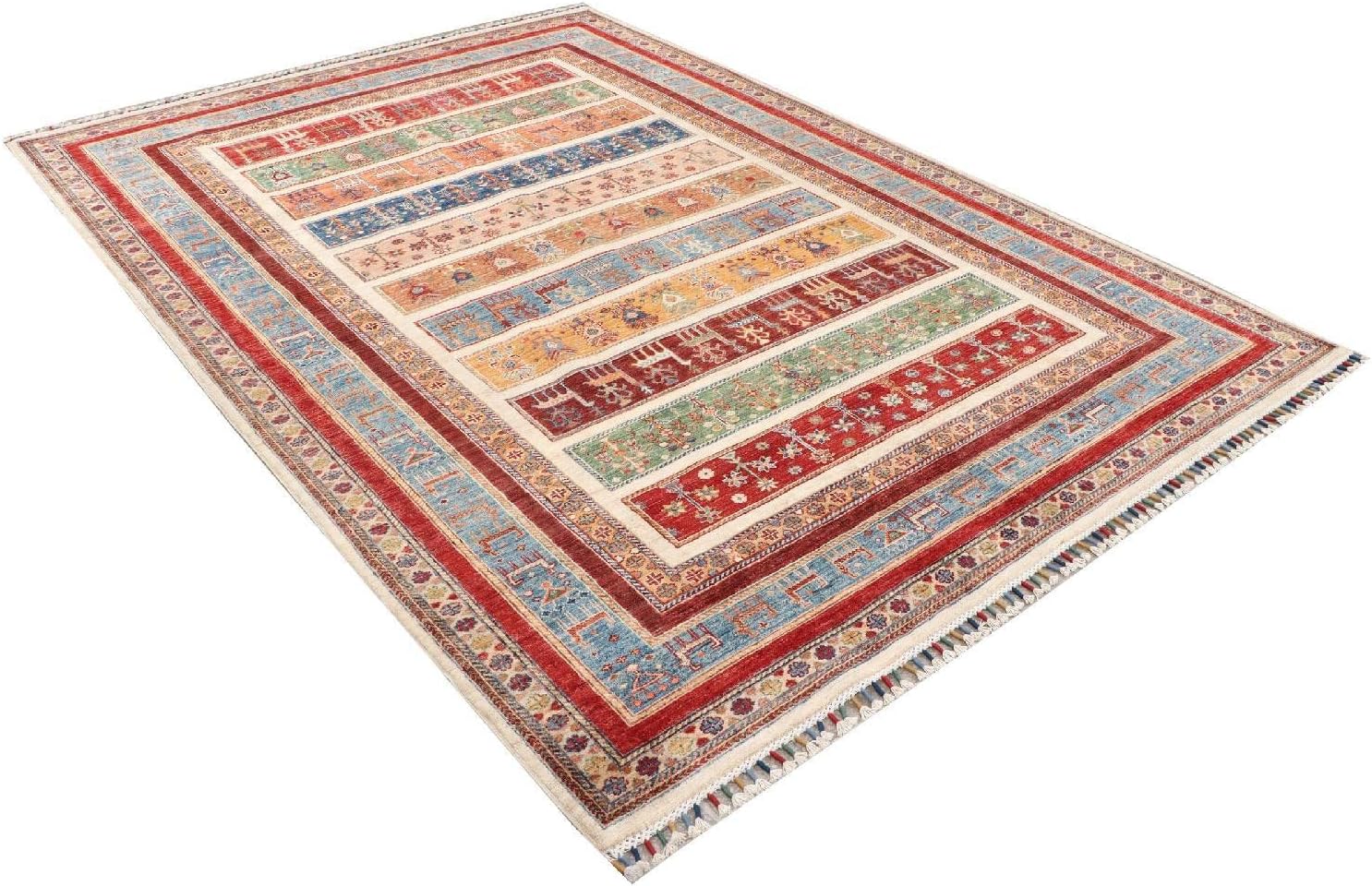 Top-Angebot: RUG PRINCE Afghan Ziegler Khorjin Ariana Rug 200 x 300 cm Hand Knotted Red Striped Orient
