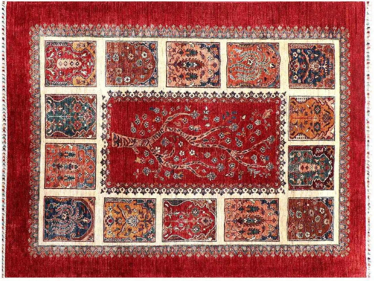 Empfehlung: RUG PRINCE Afghan Ziegler Khorjin Rug 170 x 240 cm Hand Knotted Red Bakhtiar Orient Short Pile