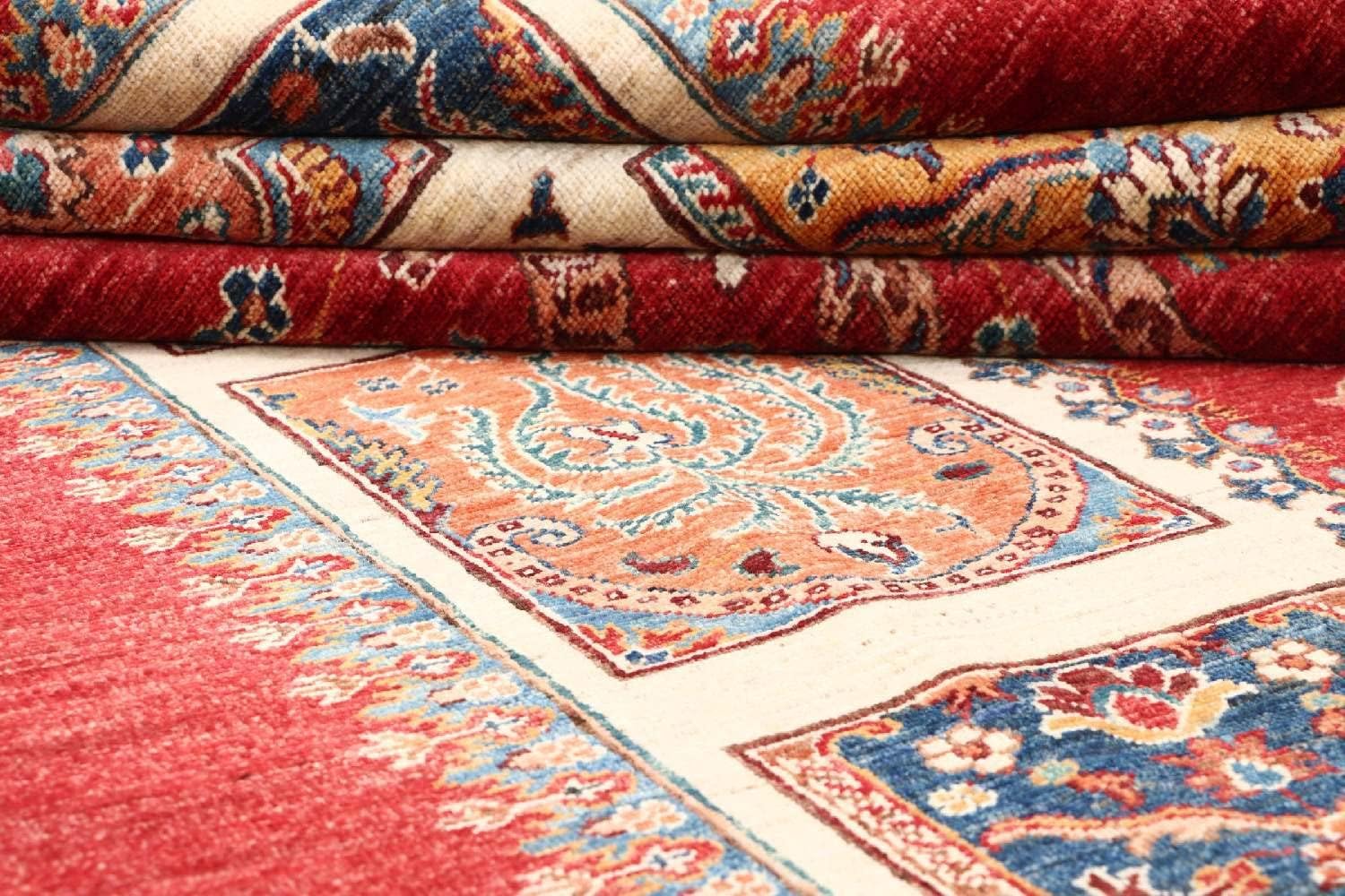 Vergleichen Sie den RUG PRINCE Afghan Ziegler Khorjin Rug 170 x 240 cm Hand Knotted Red Bakhtiar Orient Short Pile mit weiteren handgeknüpften Teppichen aus Regionen wie Isfahan, Täbriz, Nain oder Kashan. Jeder dieser Teppiche bietet seinen eigenen Charakter – von floral bis geometrisch, von klassisch bis modern.