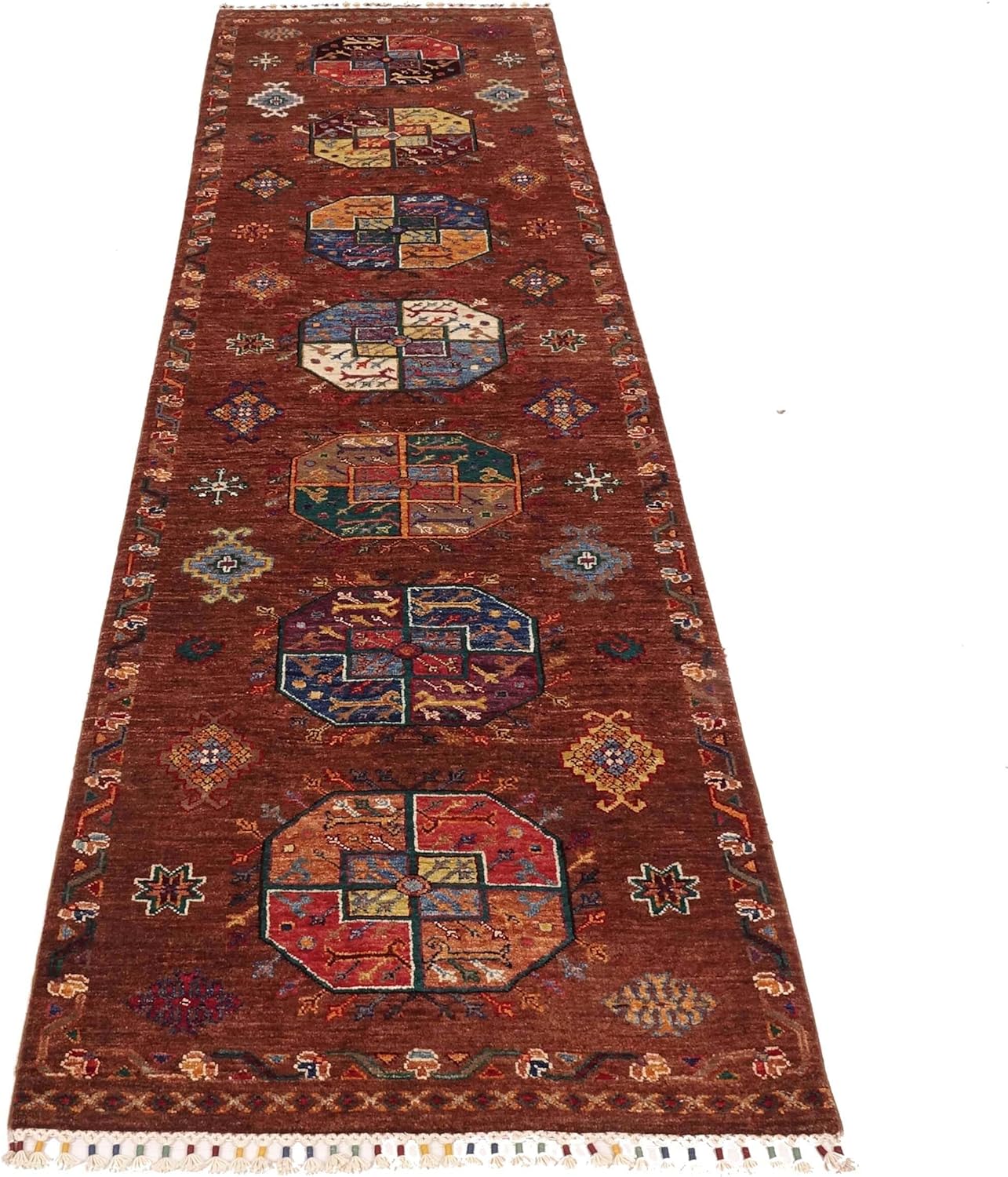 Top-Angebot: RUG PRINCE Elephant Foot Rug 80 x 300 cm Hand-Knotted Runner Brown Border Oriental