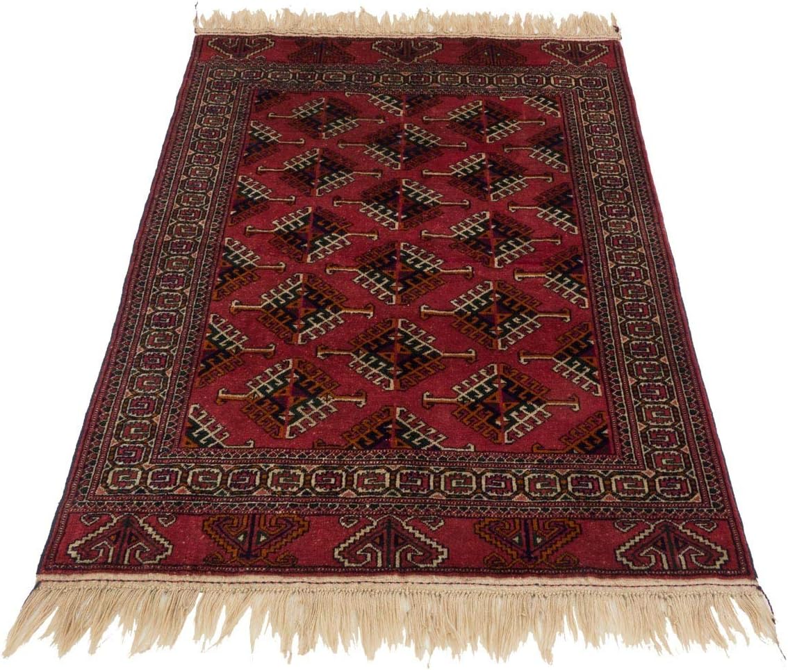 Top-Angebot: RUG PRINCE Kaucasus Buchara Rug Hand-Knotted 100 x 150 cm Red Geometric Pattern