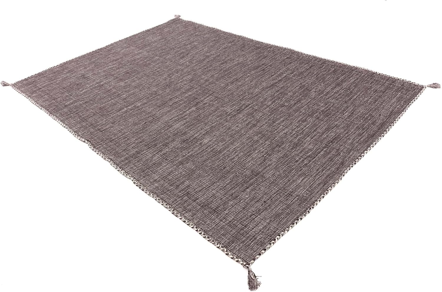 Top-Angebot: RUG PRINCE Kelim FRANSI Plain Rug 200 x 300 cm Hand-Woven Grey Handmade Room