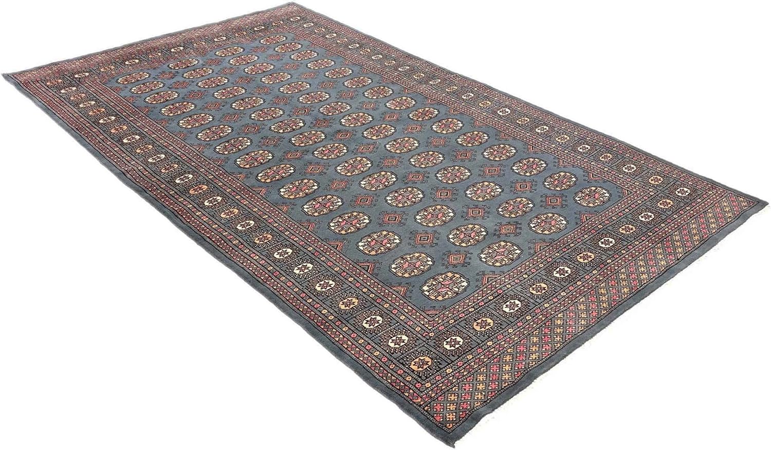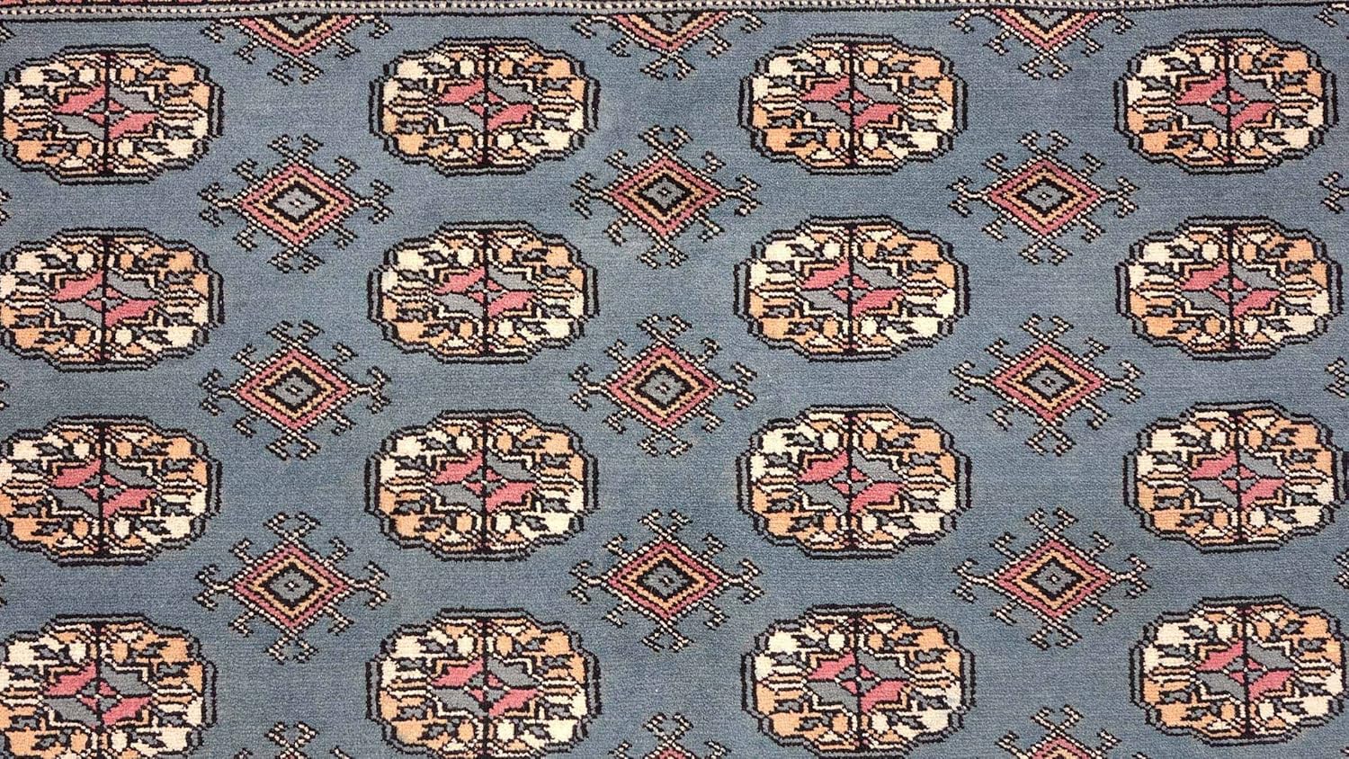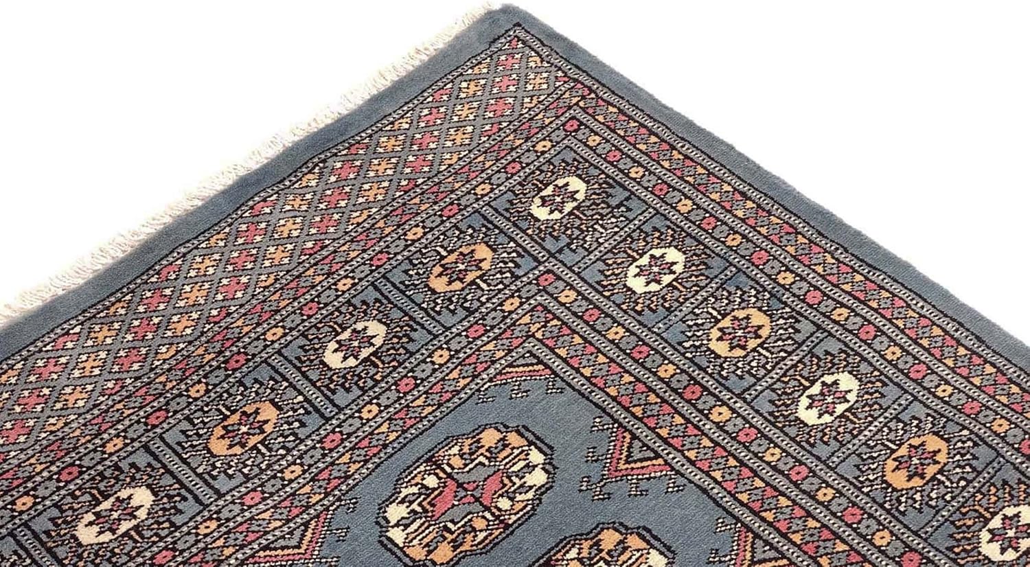 Jetzt entdecken: RUG PRINCE Pakistan Bukhara Rug 150 x 250 cm Hand-Knotted Blue Geometric Oriental Short Pile