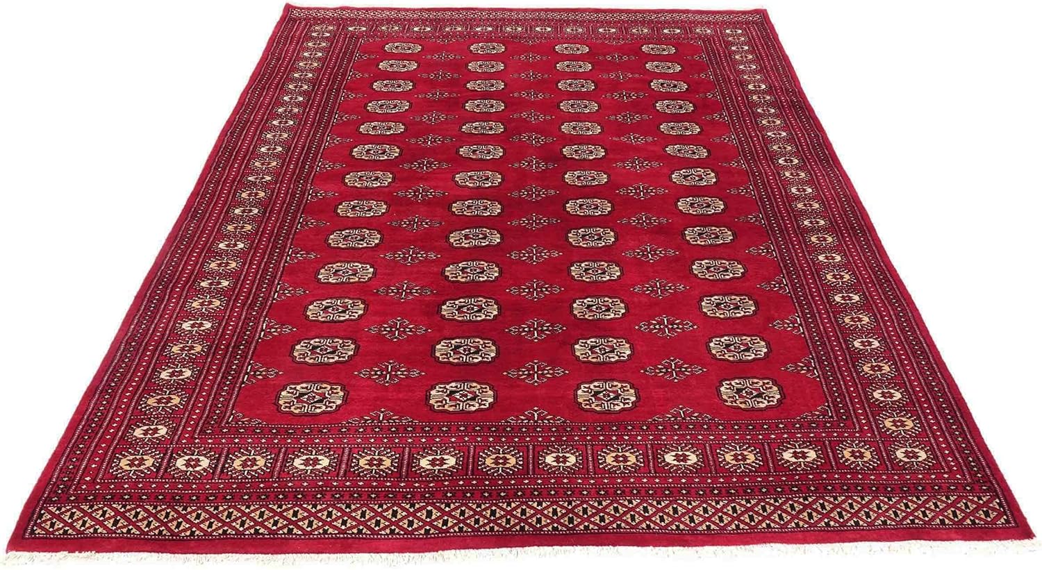 Top-Angebot: RUG PRINCE Pakistan Bukhara Rug 180 x 260 cm Hand-Knotted Red Geometric Oriental Short Pile