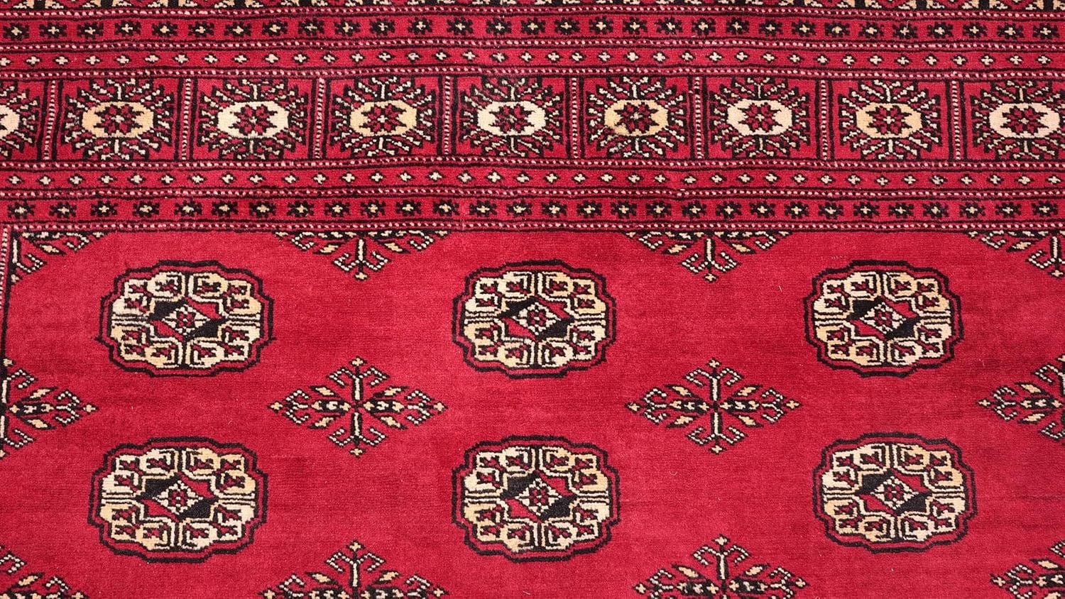 Ein handgeknüpfter Orientteppich ist nicht nur ein Bodenbelag – er ist Kunst, Kultur und Wertanlage zugleich. Mit dem RUG PRINCE Pakistan Bukhara Rug 180 x 260 cm Hand-Knotted Red Geometric Oriental Short Pile holen Sie sich ein Stück Geschichte in Ihre vier Wände.