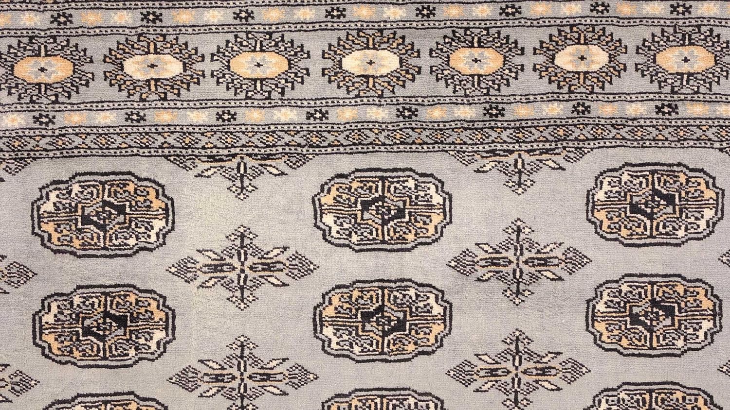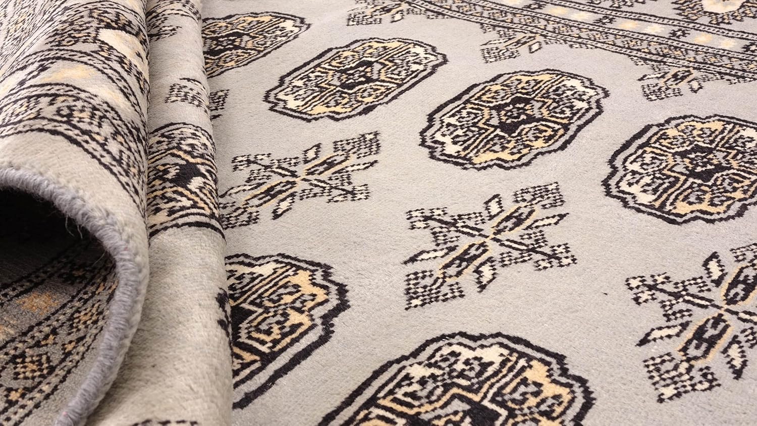 Jetzt entdecken: RUG PRINCE Pakistan Bukhara Rug 200 x 250 cm Hand Knotted Grey Geometric Oriental Short Pile