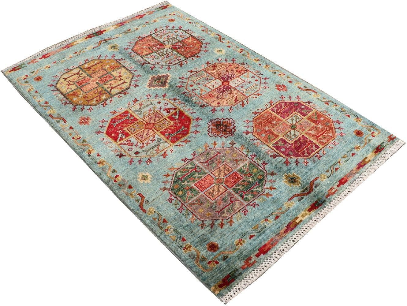 Jetzt entdecken: RUG PRINCE Ziegler Ariana Elephant Foot Rug 100 x 140 cm Hand-Knotted Blue Geometric Orient