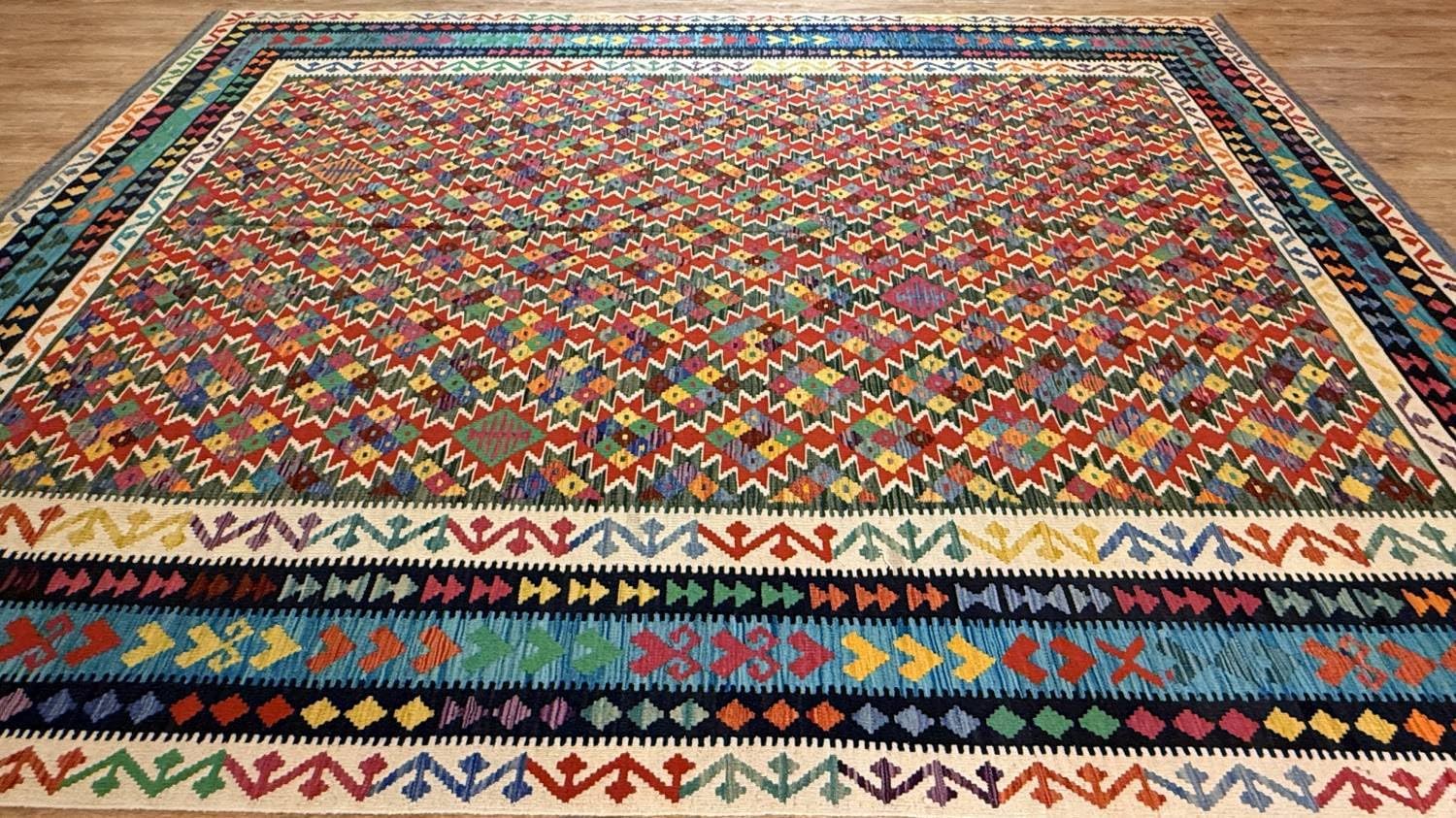 Top-Angebot: Rug Studios Teppich KELIM ORIGINAL | Farbe: Multi; Größe: 309 x 386 cm | strapazierfähig und leicht zu reinigen | Wohnzimmer | Schlafzimmer