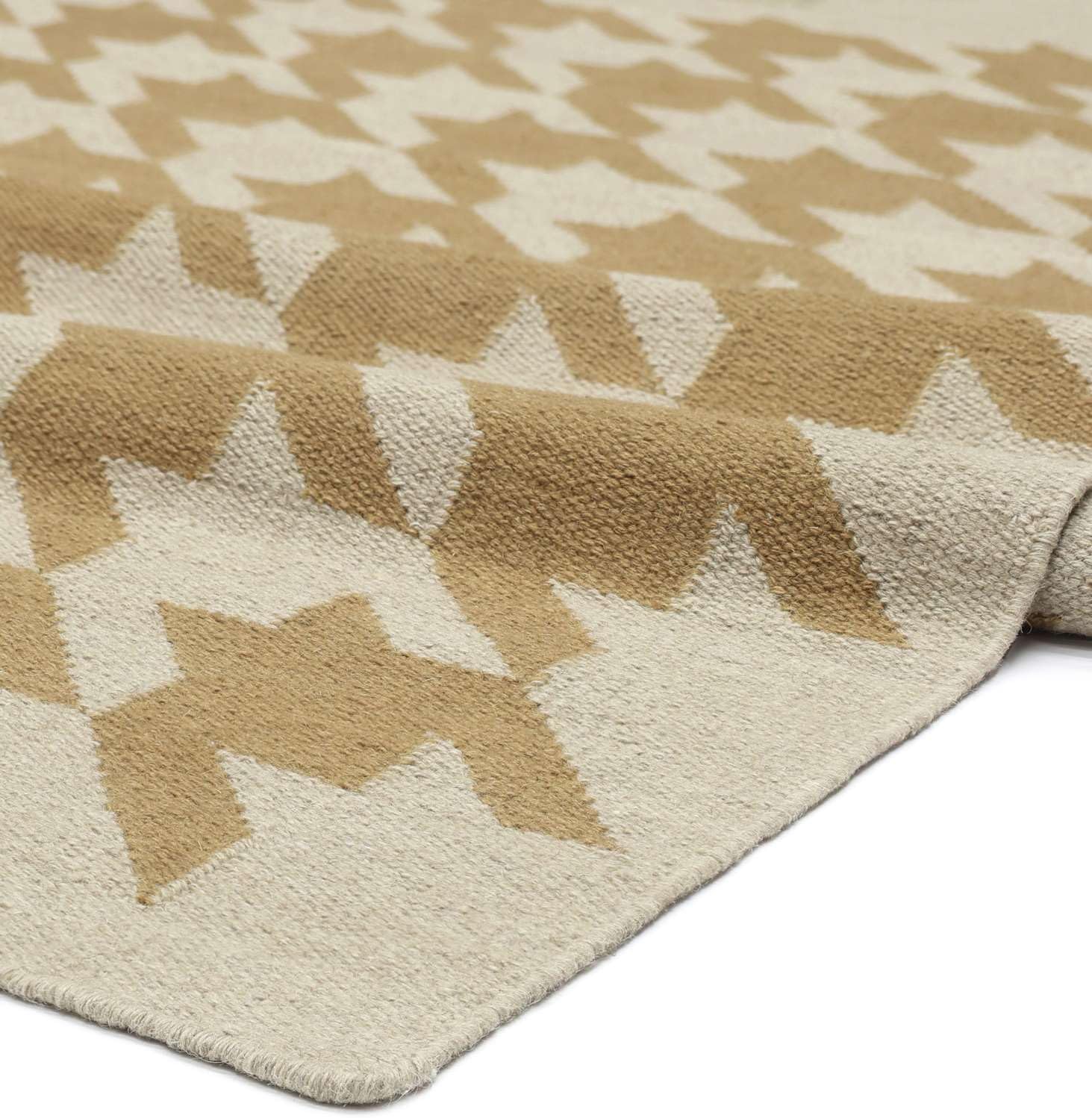 Top-Angebot: RugVista Houndstooth, Teppich, Kelim Modern, 300 x 200 cm, Rechteckig, Niedriger Stapel, Wohnzimmer, Schlafzimmer, Nur chemische Reinigung, Care & Fair Zertifiziert, Beige/Braun