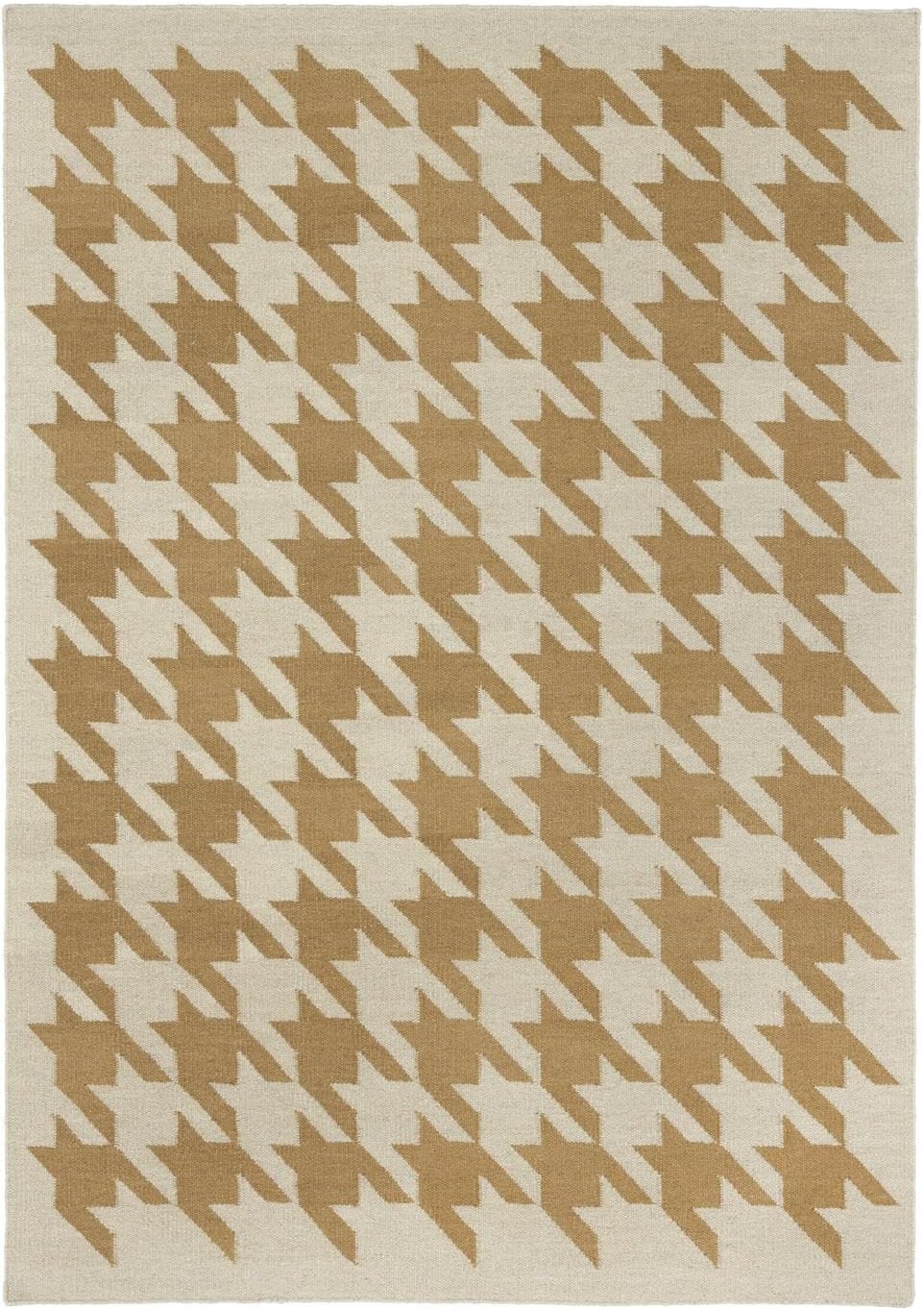 Jetzt entdecken: RugVista Houndstooth, Teppich, Kelim Modern, 300 x 200 cm, Rechteckig, Niedriger Stapel, Wohnzimmer, Schlafzimmer, Nur chemische Reinigung, Care & Fair Zertifiziert, Beige/Braun