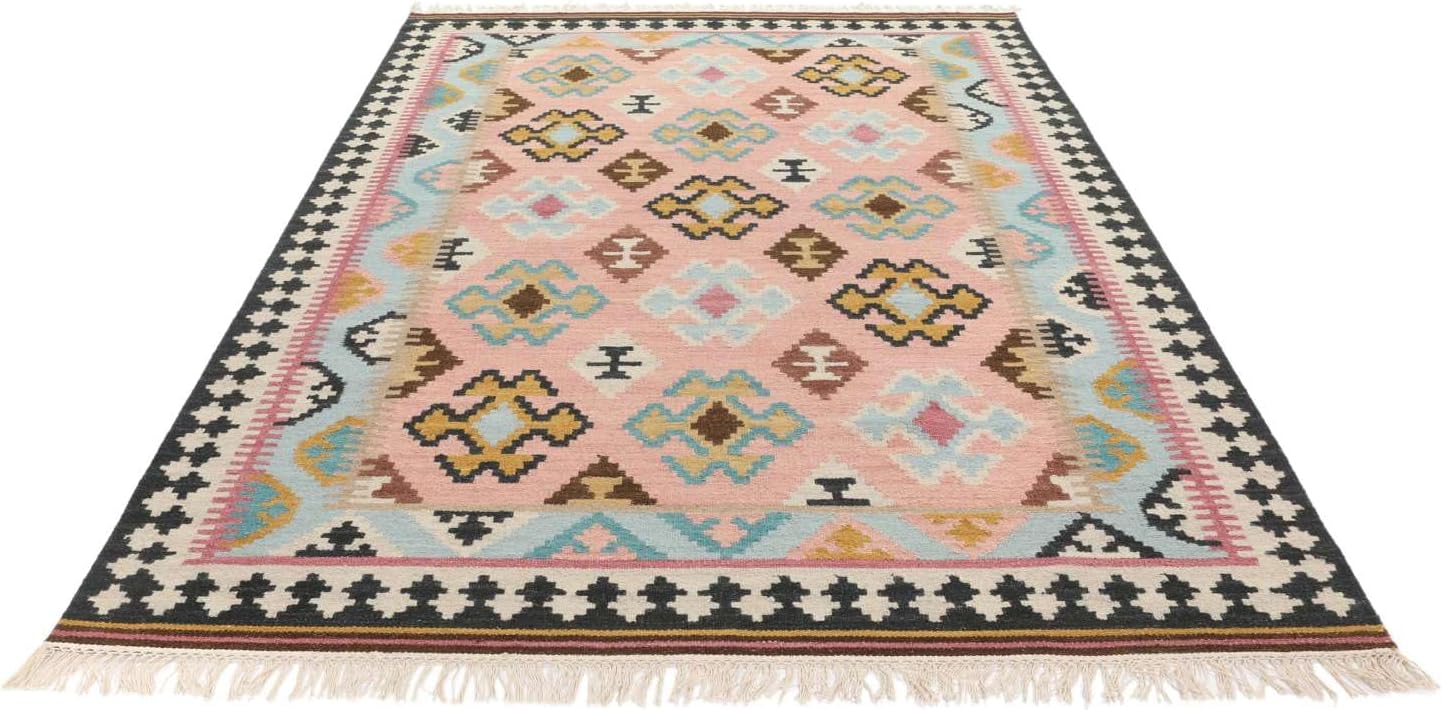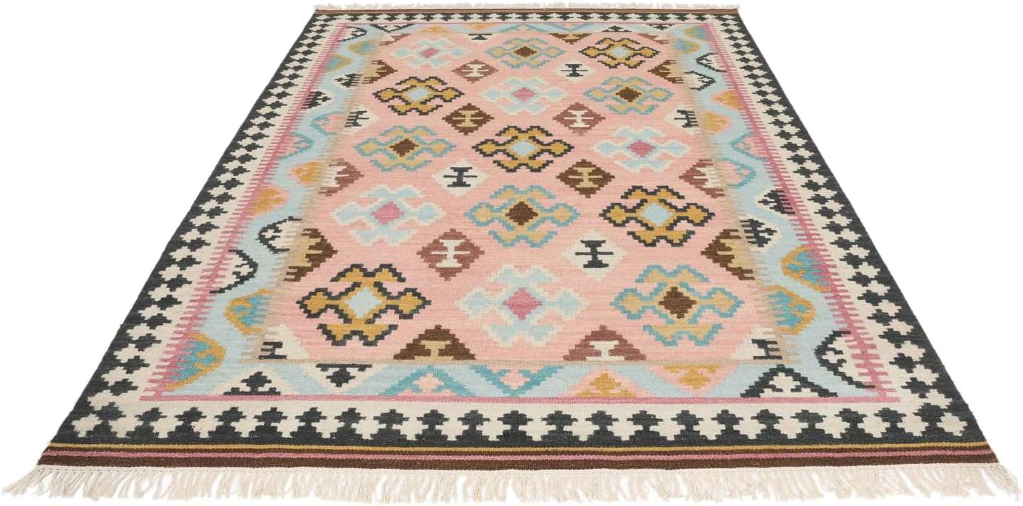 Top-Angebot: RugVista, Kalpana, Rug, 160 x 230 cm, Rectangle, Short Pile, Oriental, Care & Fair Certified, Living Room, Bedroom, Dining Room/Kitchen, Hallway, Office, Dry Clean Only, Blue/Pink