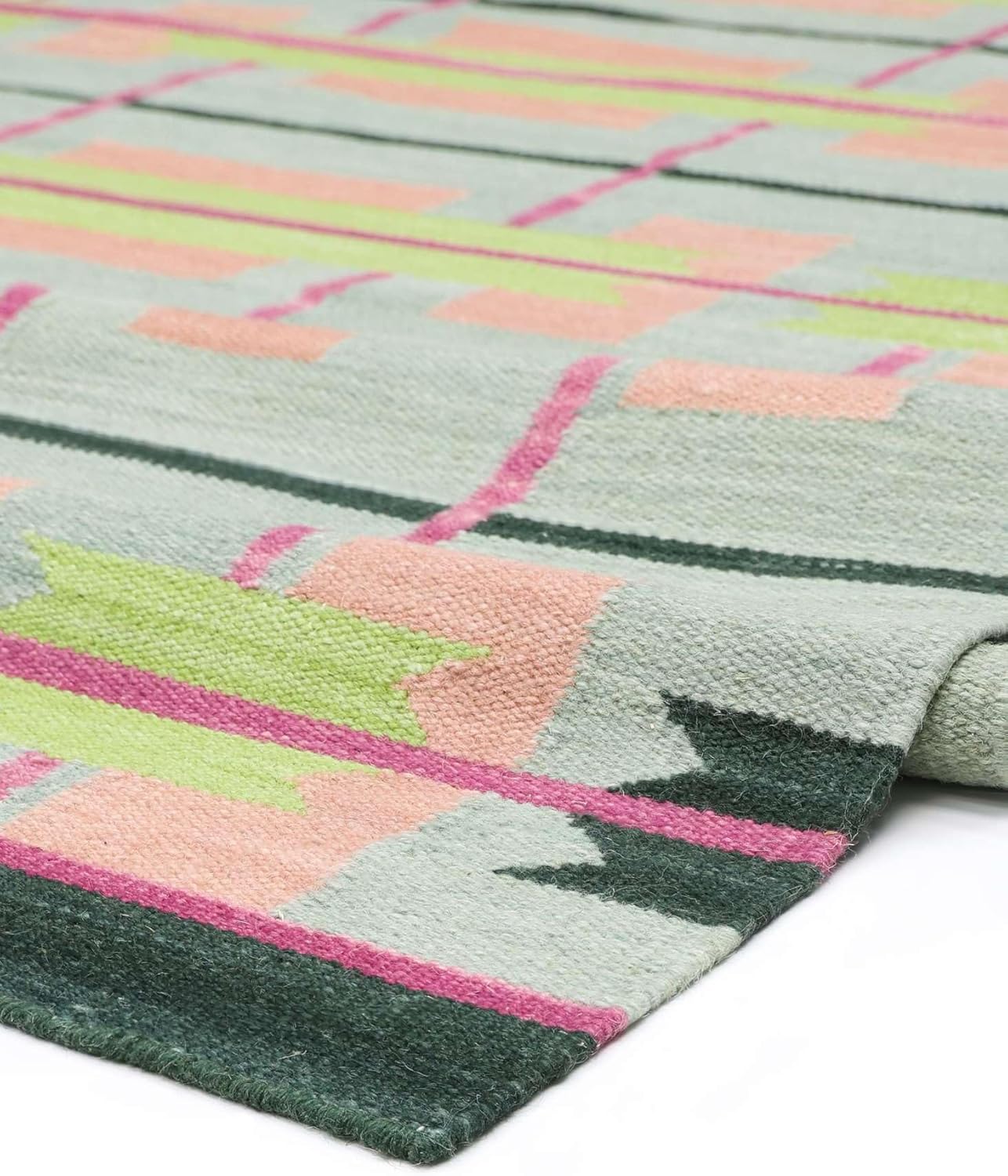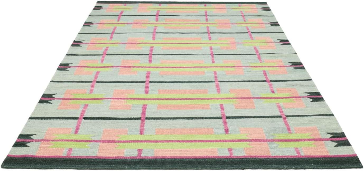 Ein handgeknüpfter Orientteppich ist nicht nur ein Bodenbelag – er ist Kunst, Kultur und Wertanlage zugleich. Mit dem RugVista Sigrid Rug, Kilim Modern, 300 x 200 cm, Rectangular, Medium Stack, Living Room, Bedroom, Dry Clean Only, Care & Fair Certified, Green/Multi holen Sie sich ein Stück Geschichte in Ihre vier Wände.