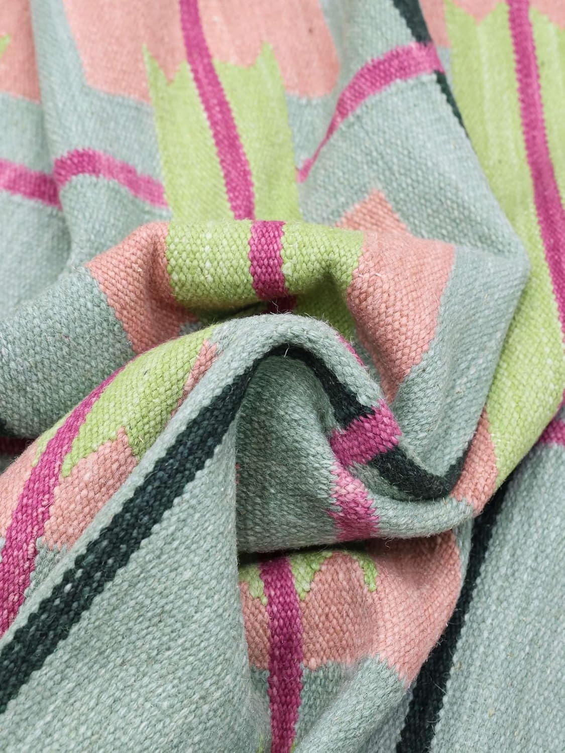 Ein handgeknüpfter Orientteppich ist nicht nur ein Bodenbelag – er ist Kunst, Kultur und Wertanlage zugleich. Mit dem RugVista Sigrid Rug, Kilim Modern, 300 x 200 cm, Rectangular, Medium Stack, Living Room, Bedroom, Dry Clean Only, Care & Fair Certified, Green/Multi holen Sie sich ein Stück Geschichte in Ihre vier Wände.