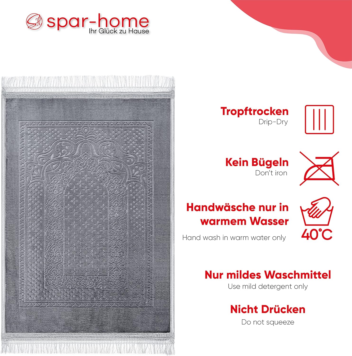 Top-Angebot: spar-home Very Soft Prayer Mat | Sejjade | Seccade | Colourfast Namazlik | Bath Mat | Premium Quality | 80 x 120 cm (Grey)