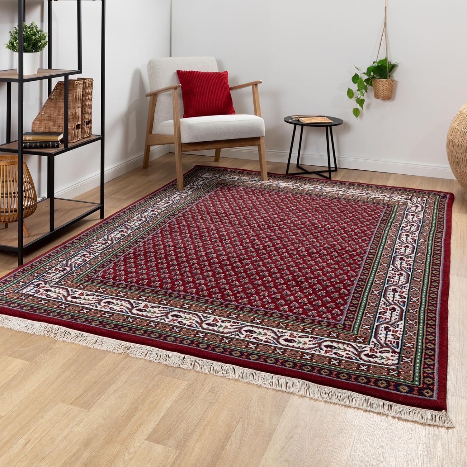 Jetzt entdecken: Steffensmeier Mir Royal Oriental Living Room Rug, Hand-Knotted with Fringes, Virgin Wool, Red, Size: 250 x 300 cm