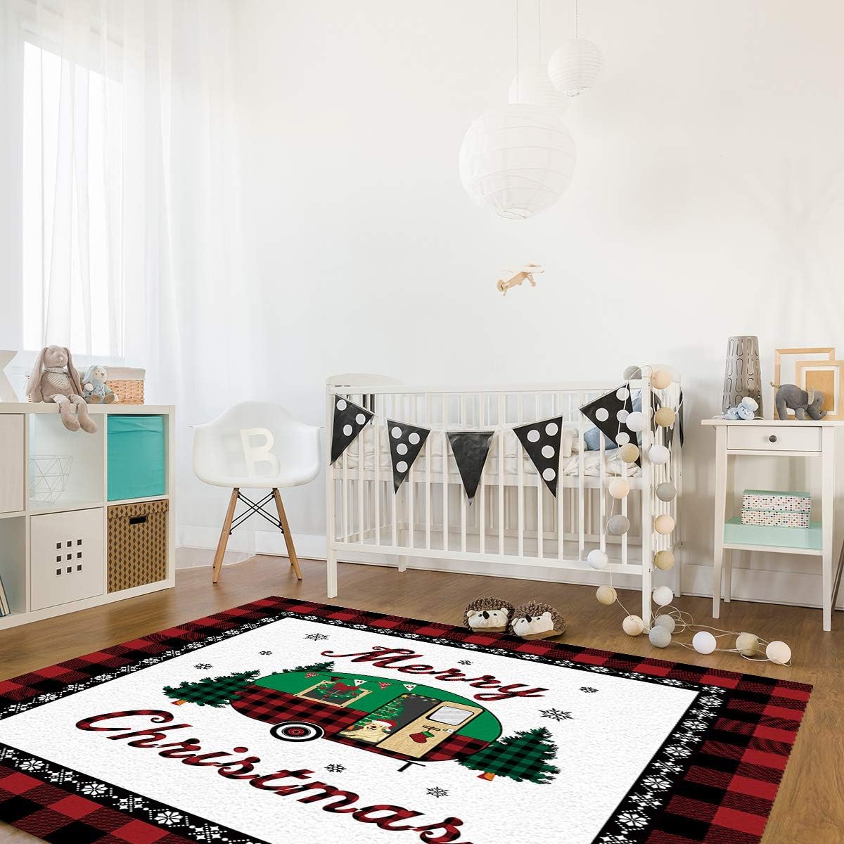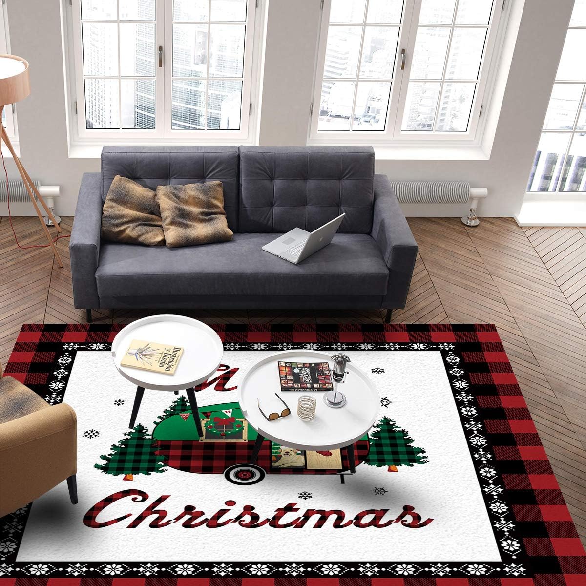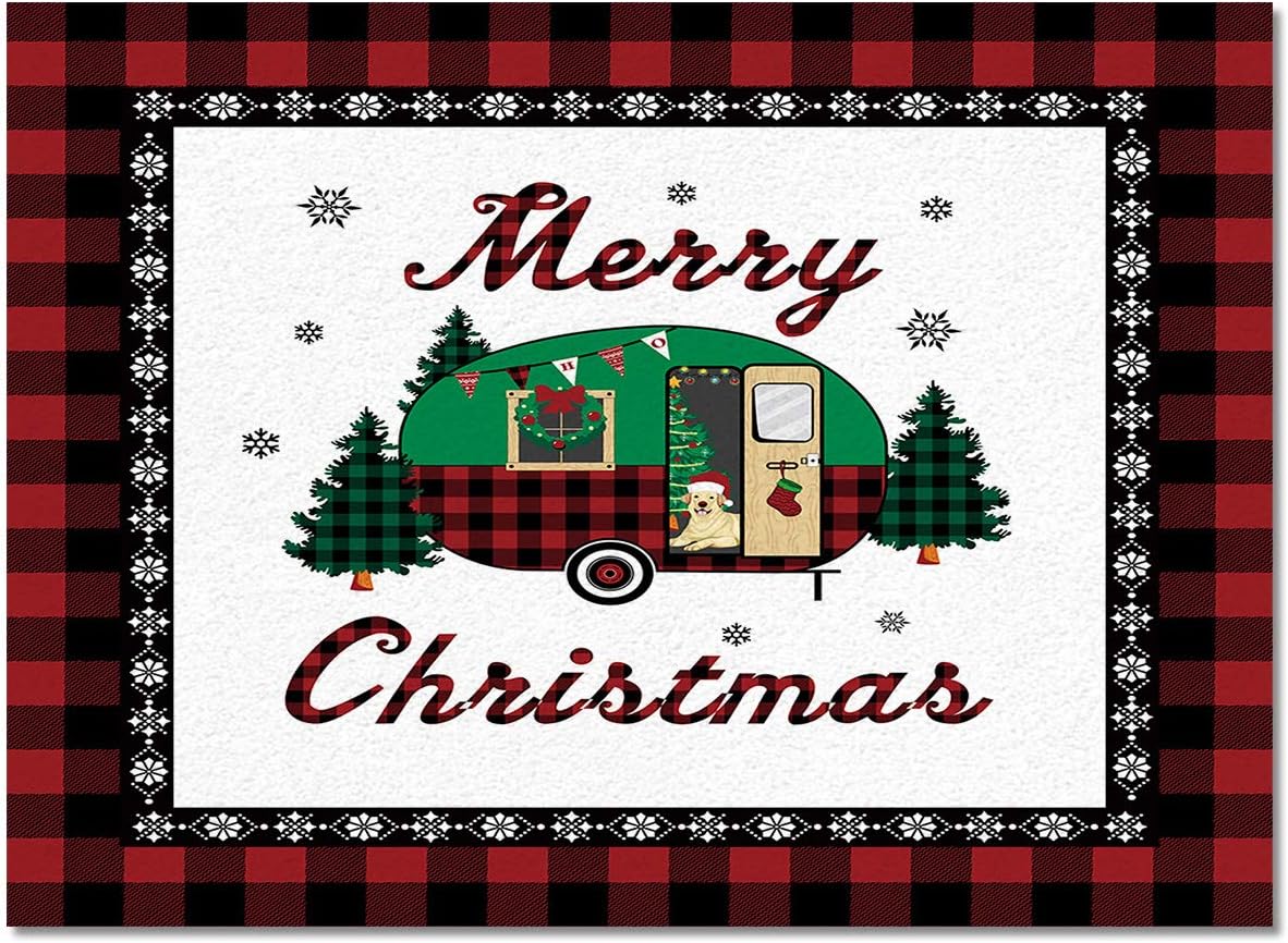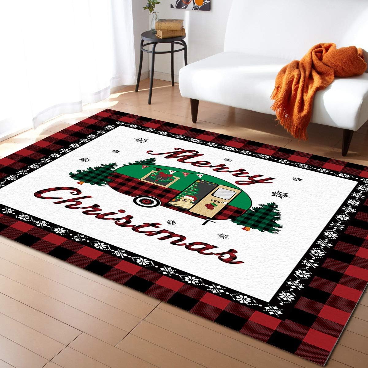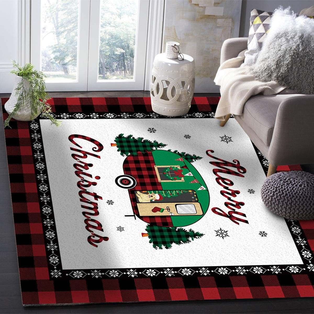 Empfehlung: Yalych Large Rug for Living Room – Merry Christmas Car Red Plaid Border Soft Comfort Carpet Home Decorate Contemporary Runner Rugs 5’x7′ Carpet (Size : 5′ x 7′)